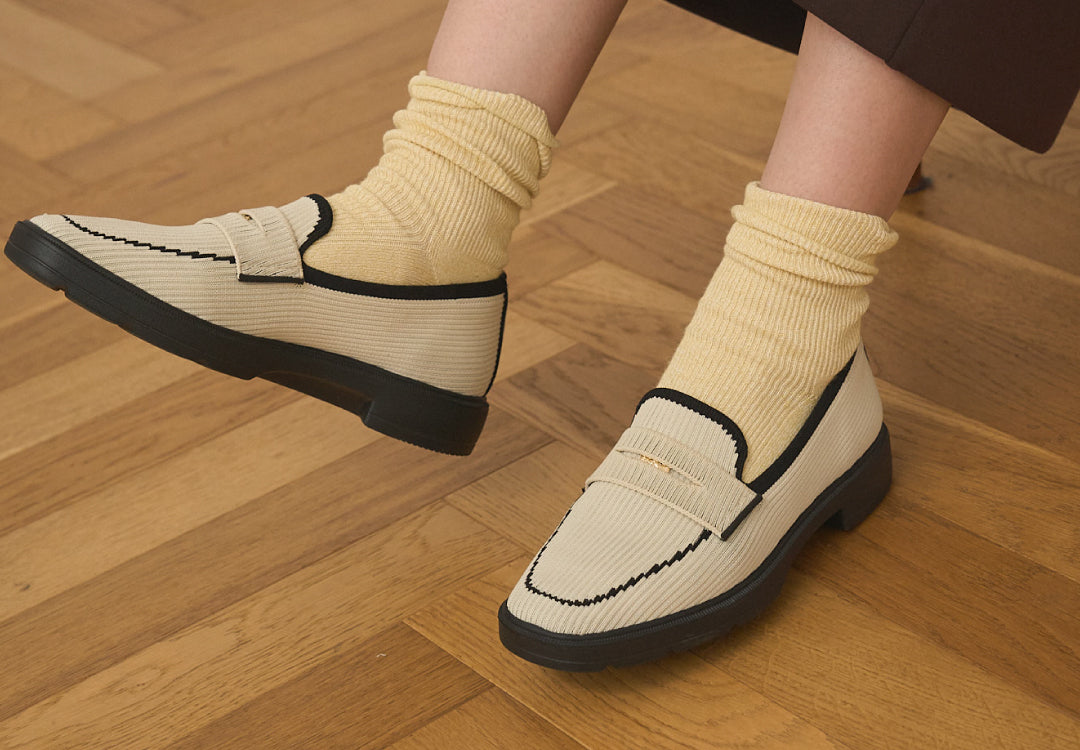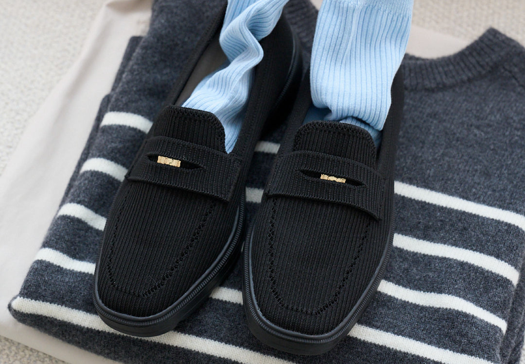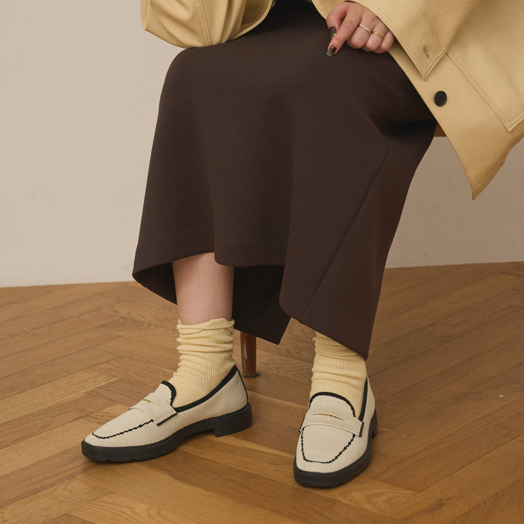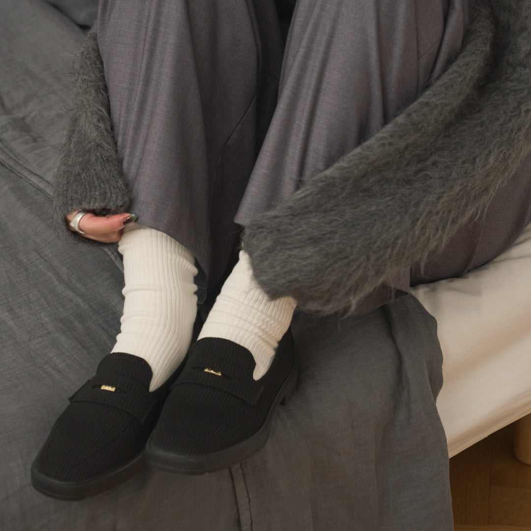 冬の足元に軽やかさと上品さを添える一足、ニットローファー。