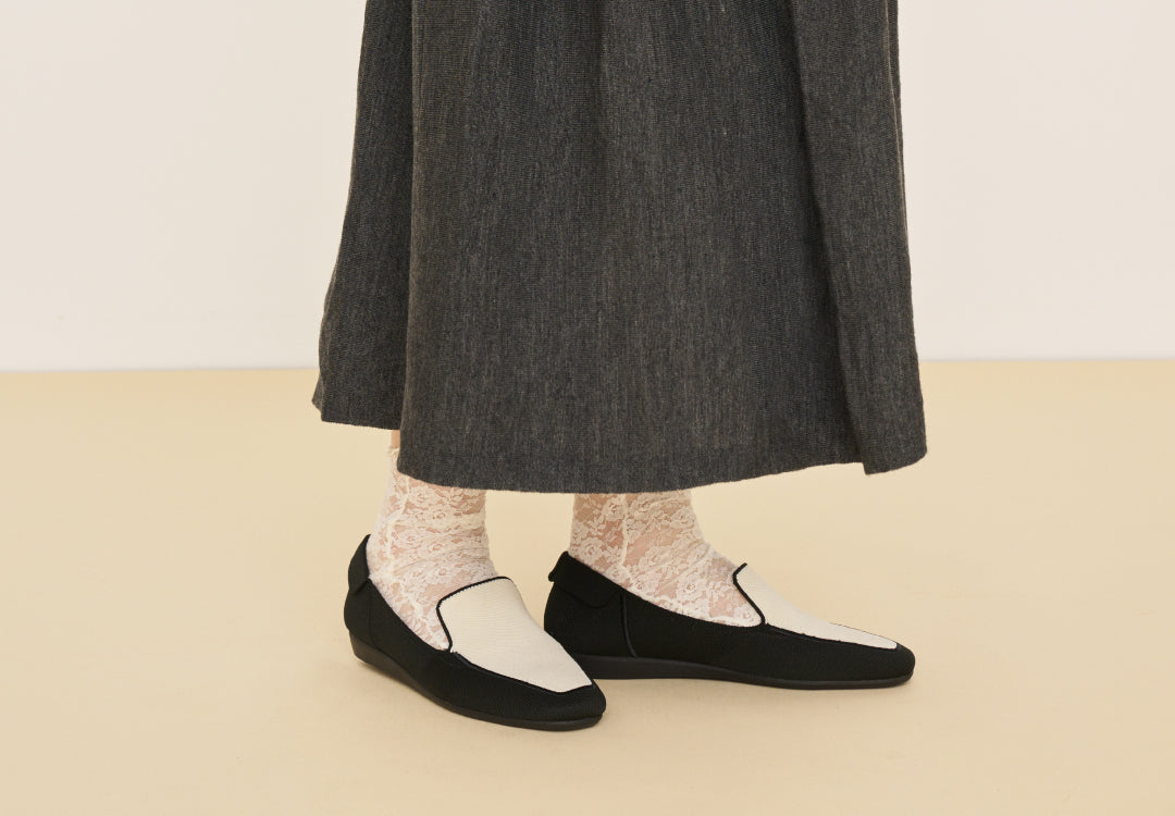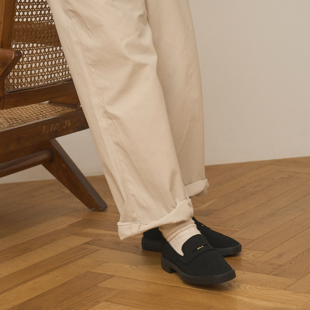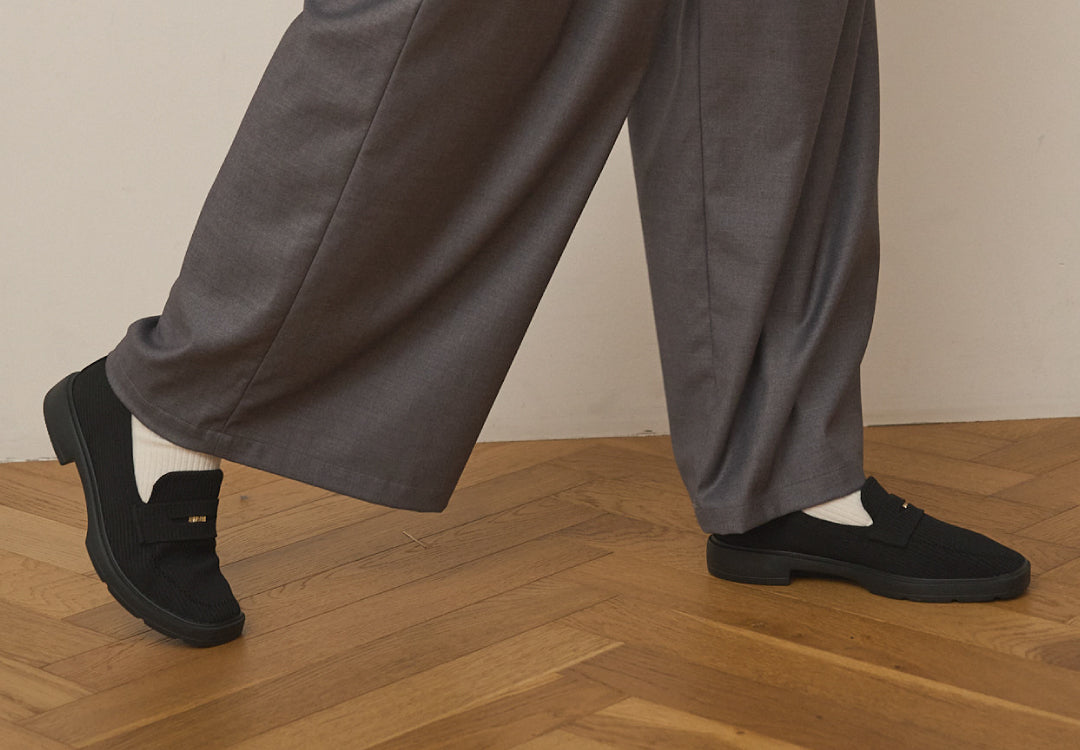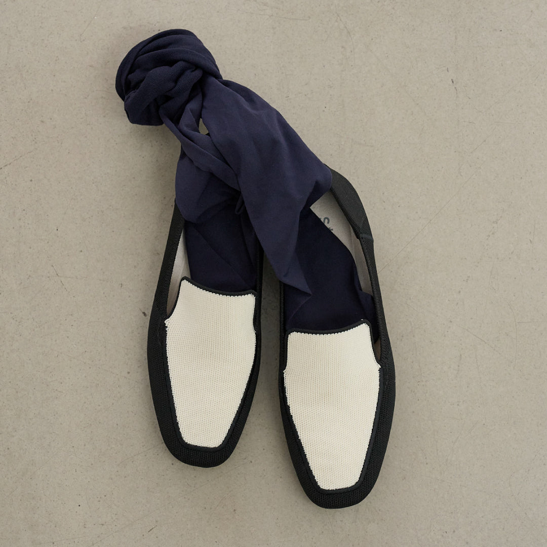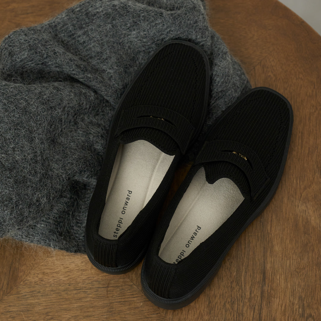 冬の足元に軽やかさと上品さを添える一足、ニットローファー。
