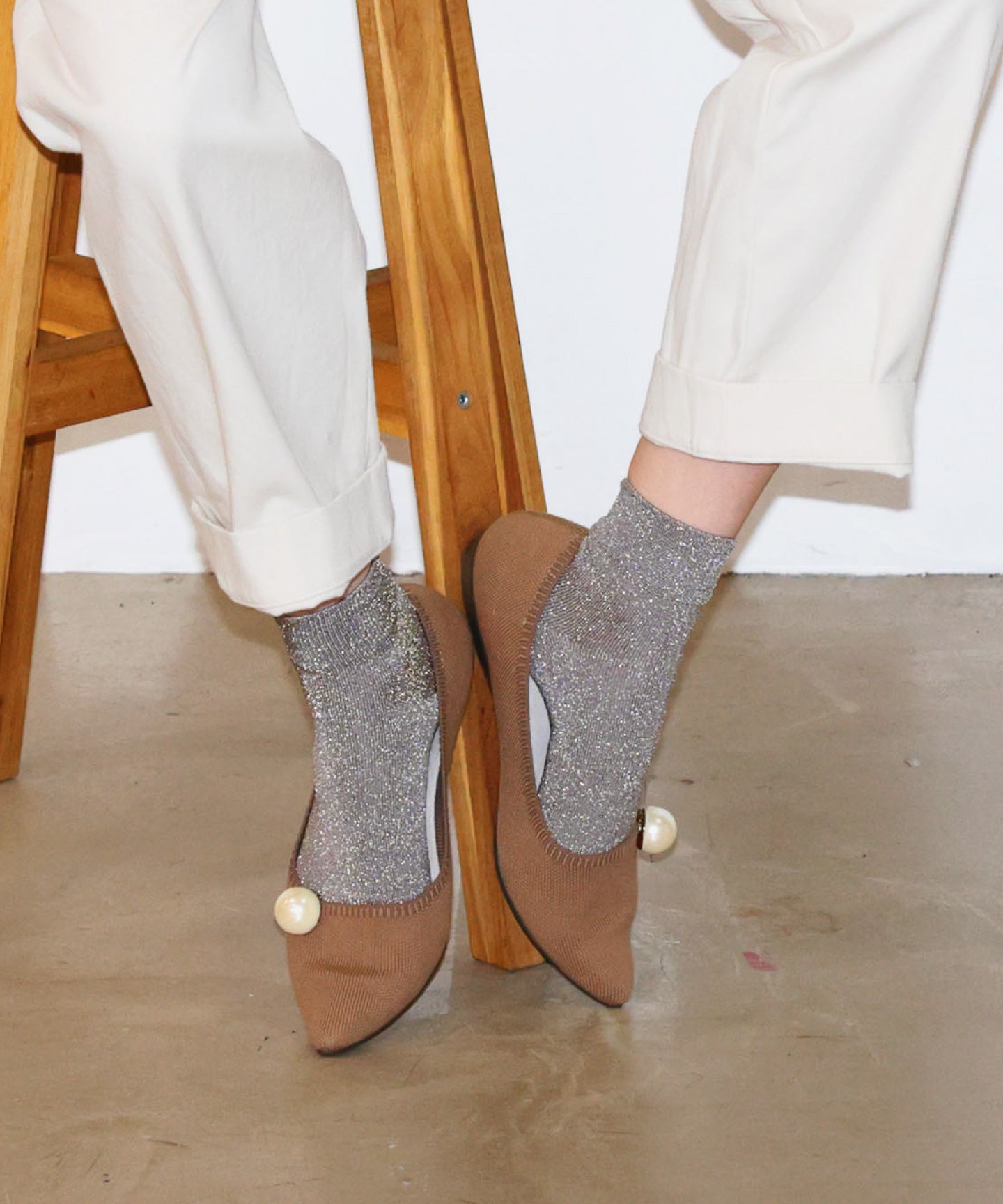 片足わずか120g、おおよそタマゴ2個分の軽さです(サイズによって個体差がございます)。秘密は一枚仕立てのニットアッパーと発泡素材のアウトソール。軽量リサイクルポリエステルヤーンでしなやかに編みたてることで裏材や芯材を排除。 アウトソールはランニングシューズのような軽さとクッション性に、パンプスのきちんと感もある絶妙なバランスにたどり着きました。