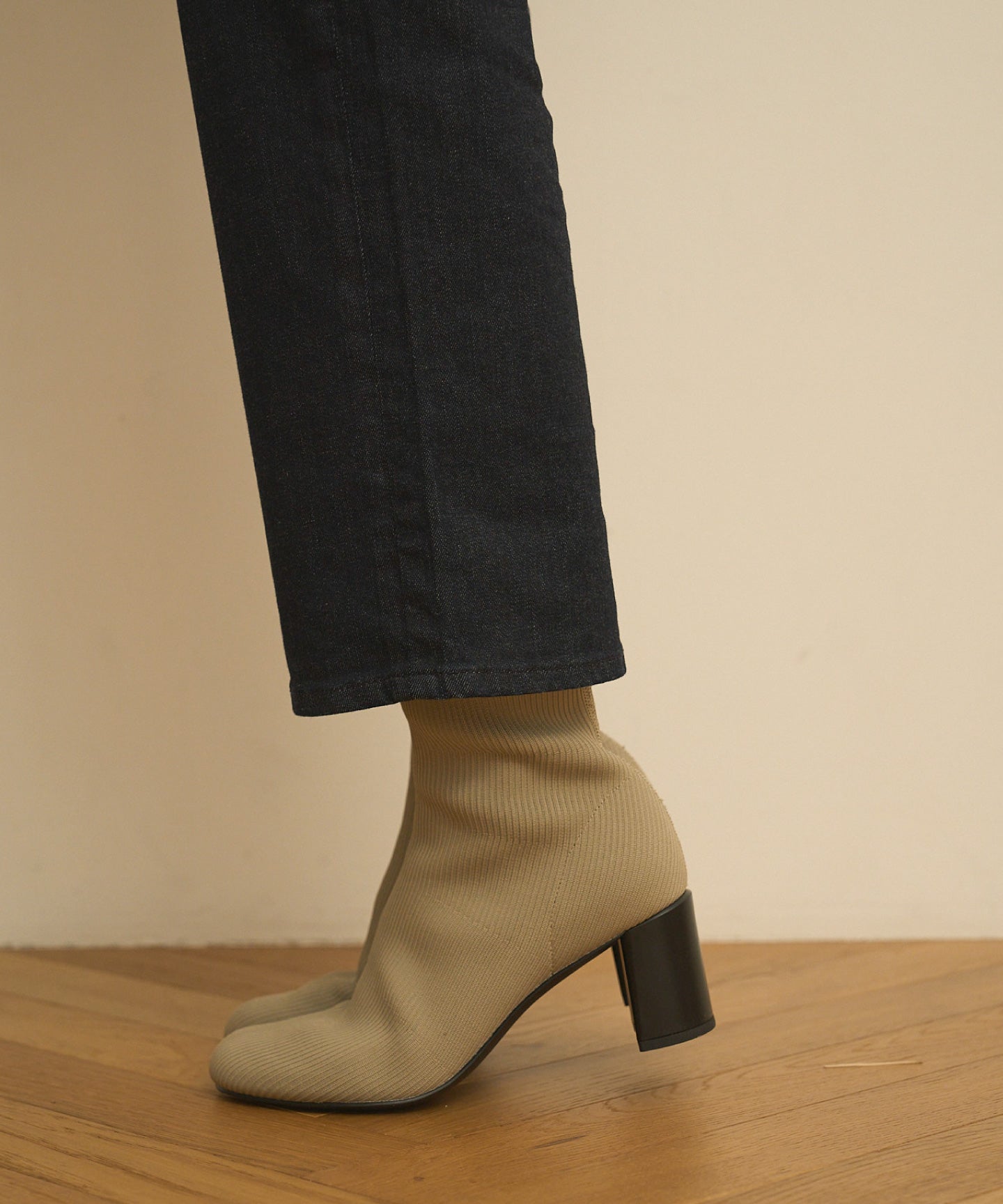 エレガントで洗練された印象の細いリブ編みのニットアッパーは足を綺麗に見せてくれ、また甲部分をしっかりホールドするのでヒールがあっても歩きやすくなっています。