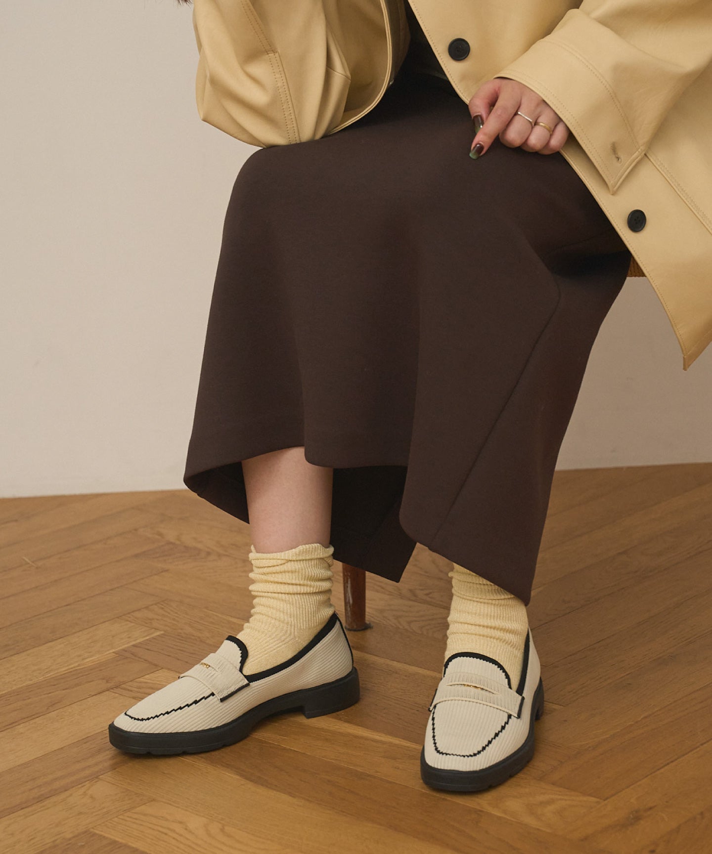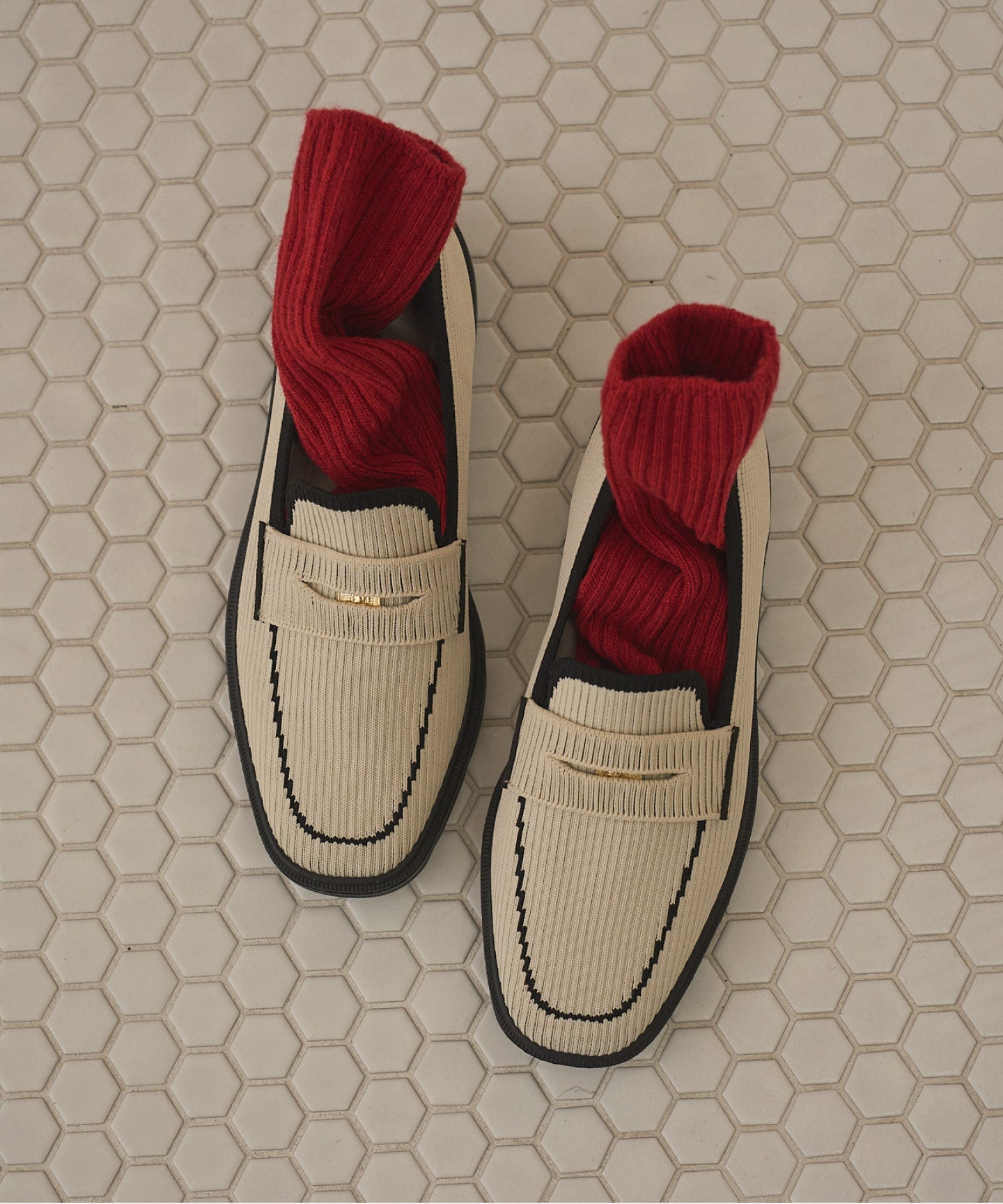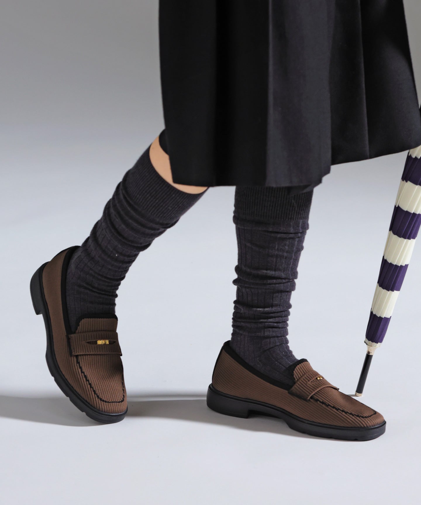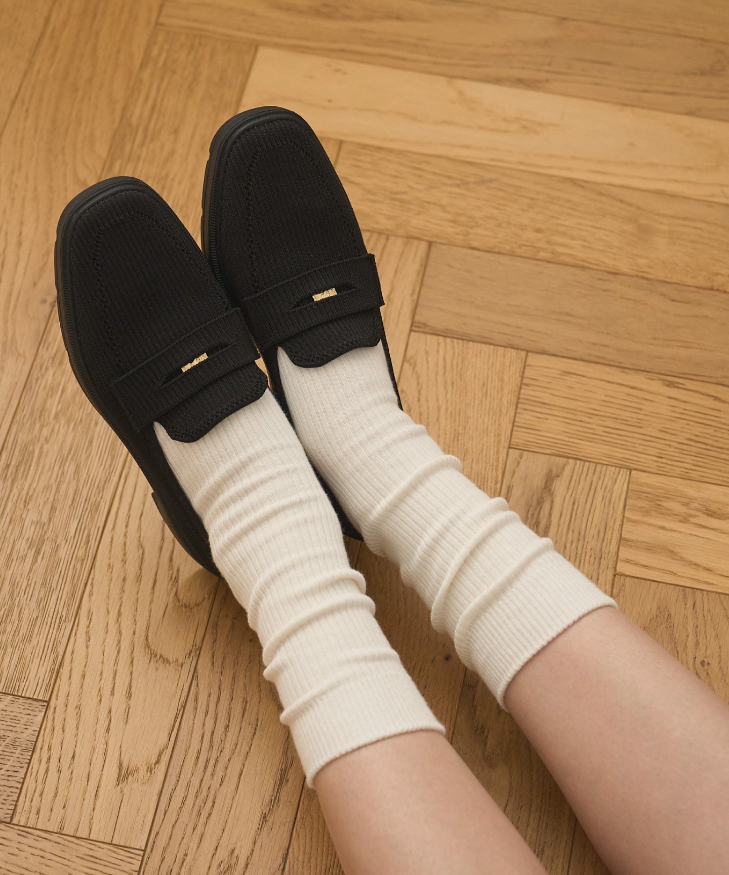外反母趾でもニットが柔らかくて足を包んでくれるので、ずっと履いていられます。ローファーなのにガシガシ履けるのがうれしい。クッションも快適です。