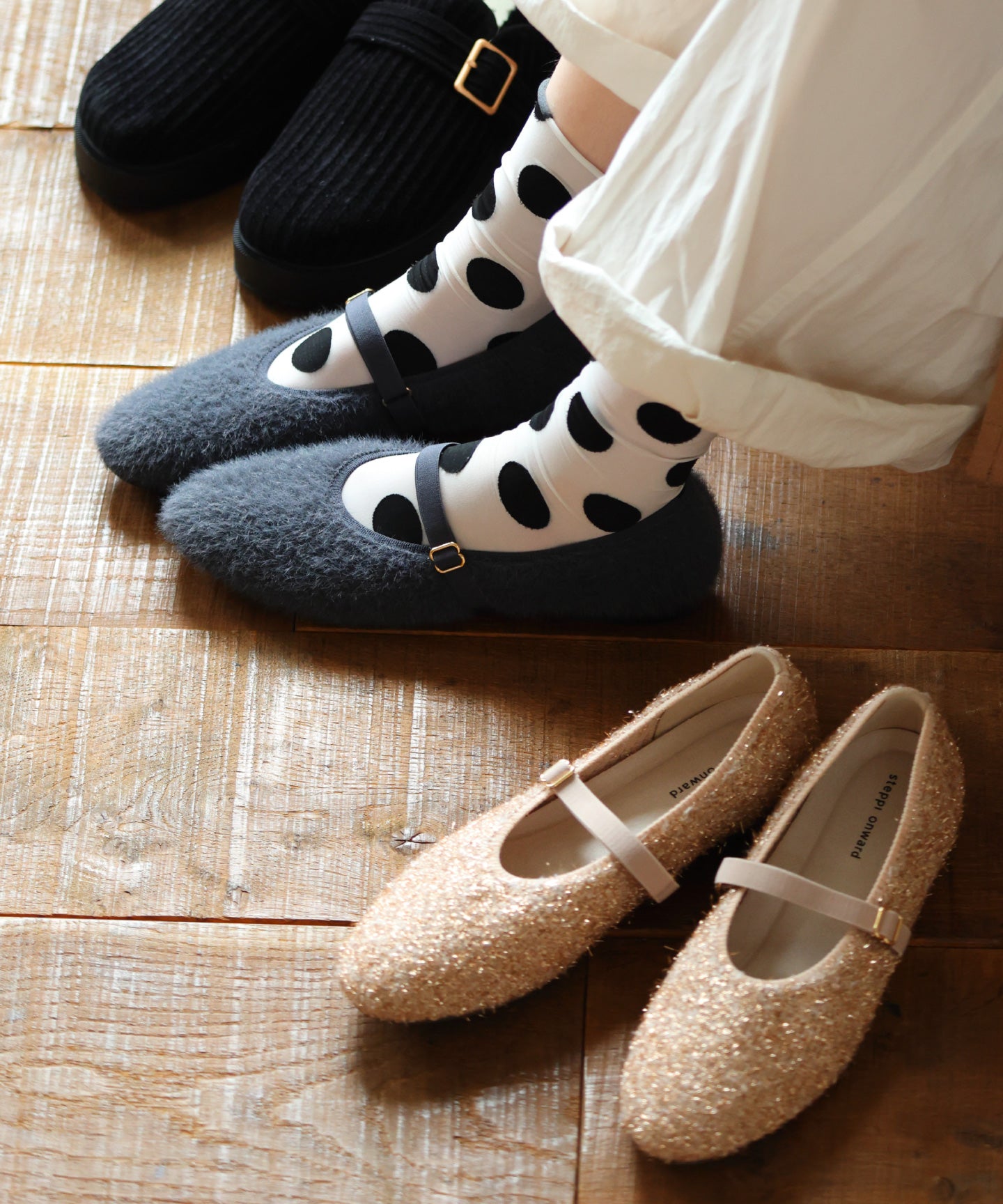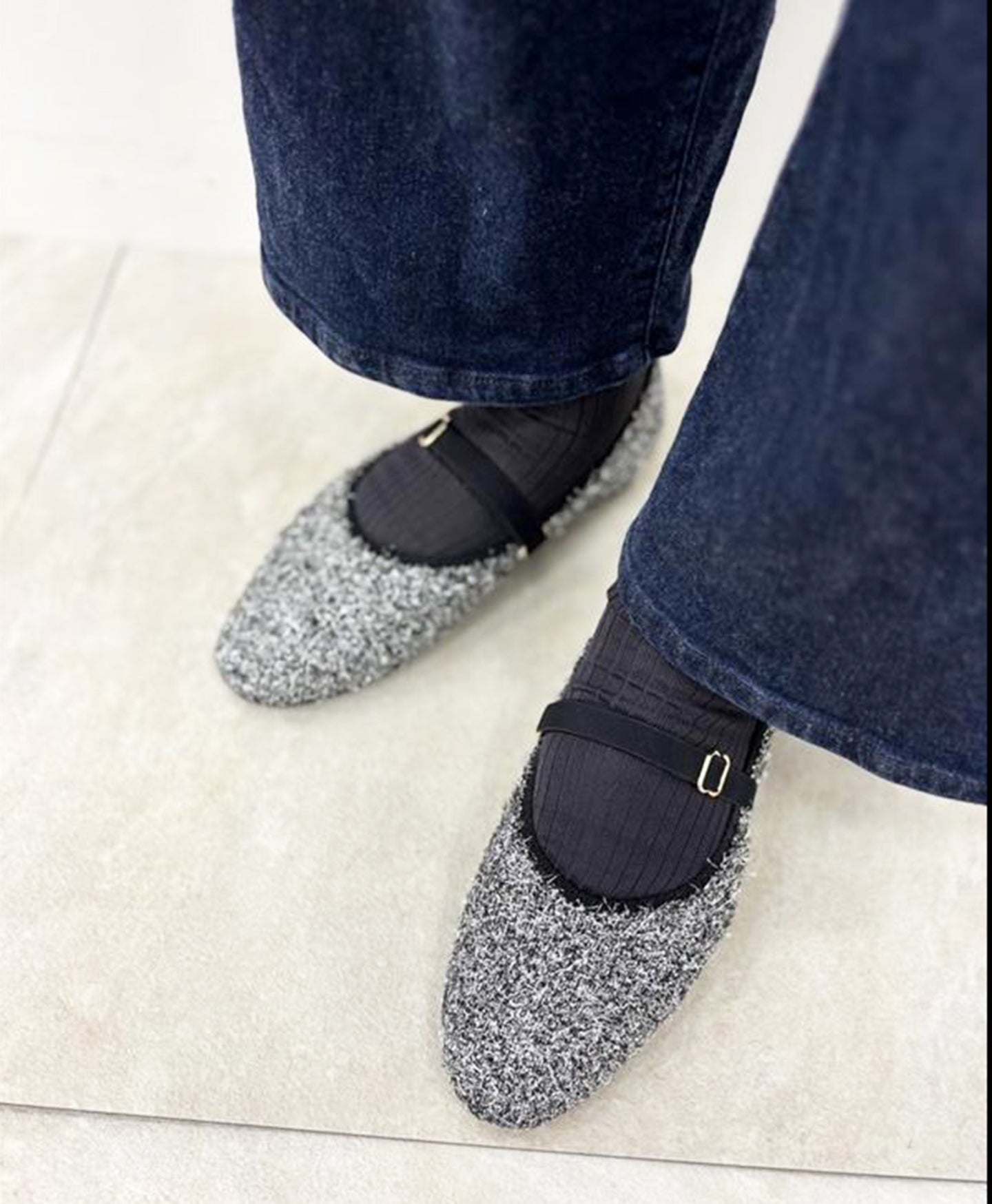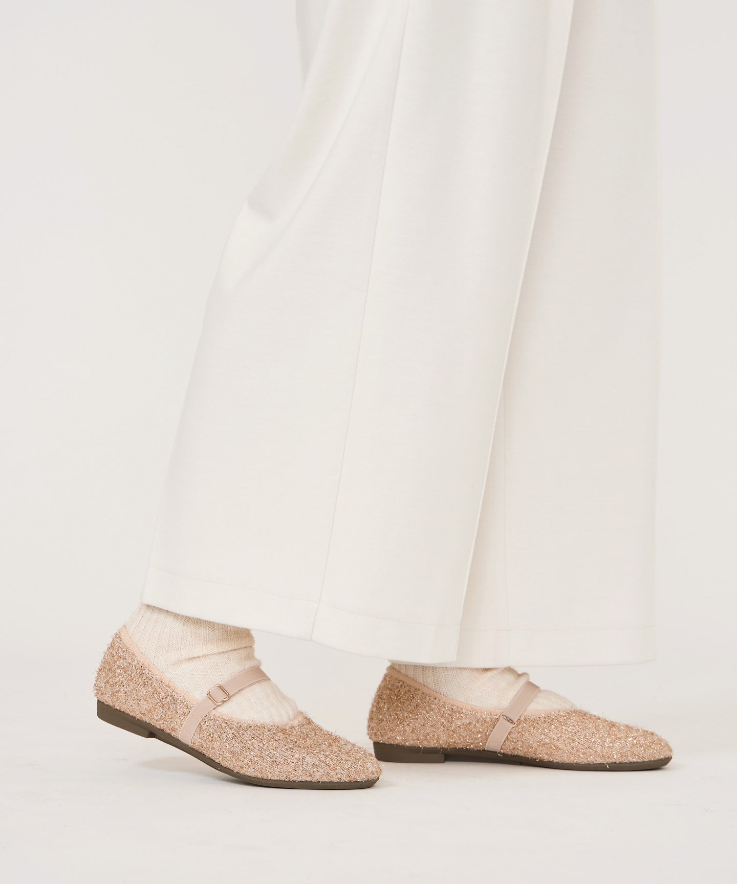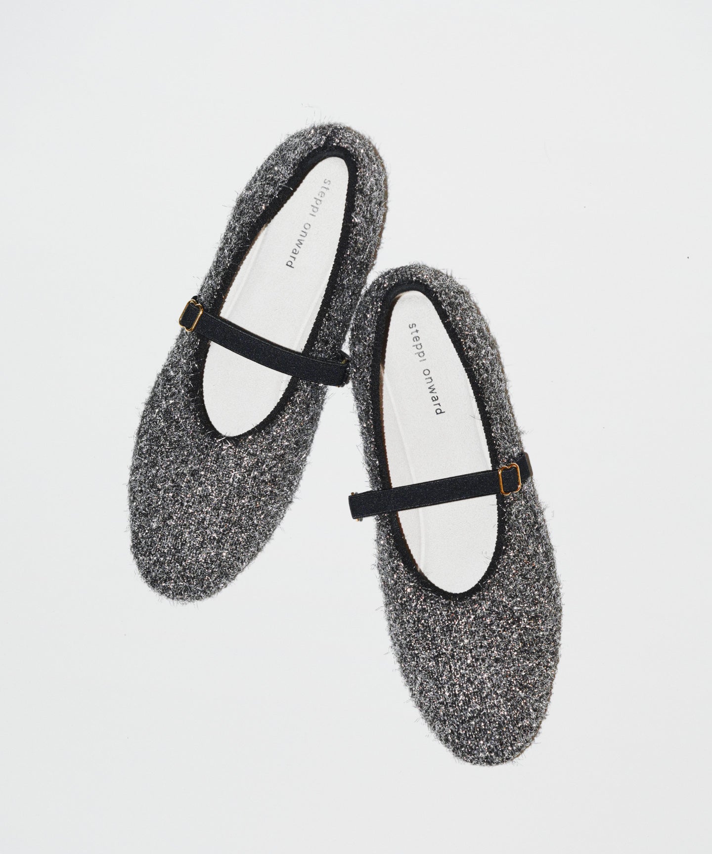 ふわふわ・キラキラのビジュアルでコーデの主役にもなれる存在感。履くだけで気分が上がる一足。steppiならではのリラックス感のある履き心地で、トレンド感も歩きやすさも叶えてしまう、今期一押しのフラットシューズです。