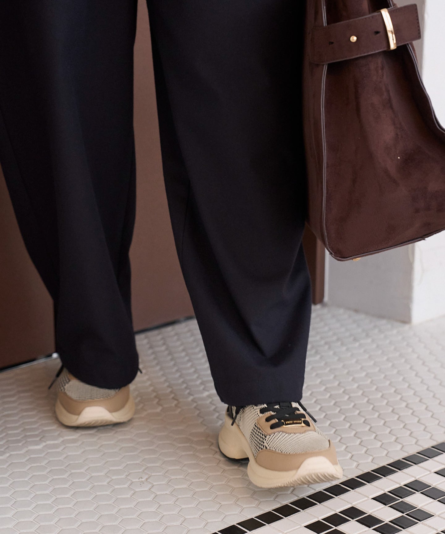 モードな雰囲気をまとい、きれいめにもカジュアルにもすっと馴染む、着回し力抜群の一足です。